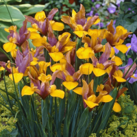 Ирис Бронз Квин – многолетнее луковичное растение из семейства Касатиковых. Подходит для украшения клумб и сада в весенний период. Растение состоит из плотных стеблей и прямостоячих тонких листьев, а цветок – из трех волнистых сиреневых лепестков, изогнутых в виде короны, и трех бронзовых лепестков, изогнутых противоположно. Бутоны, словно порхающие бабочки, служат украшением весенних клумб. Растение цветет в мае-июне.